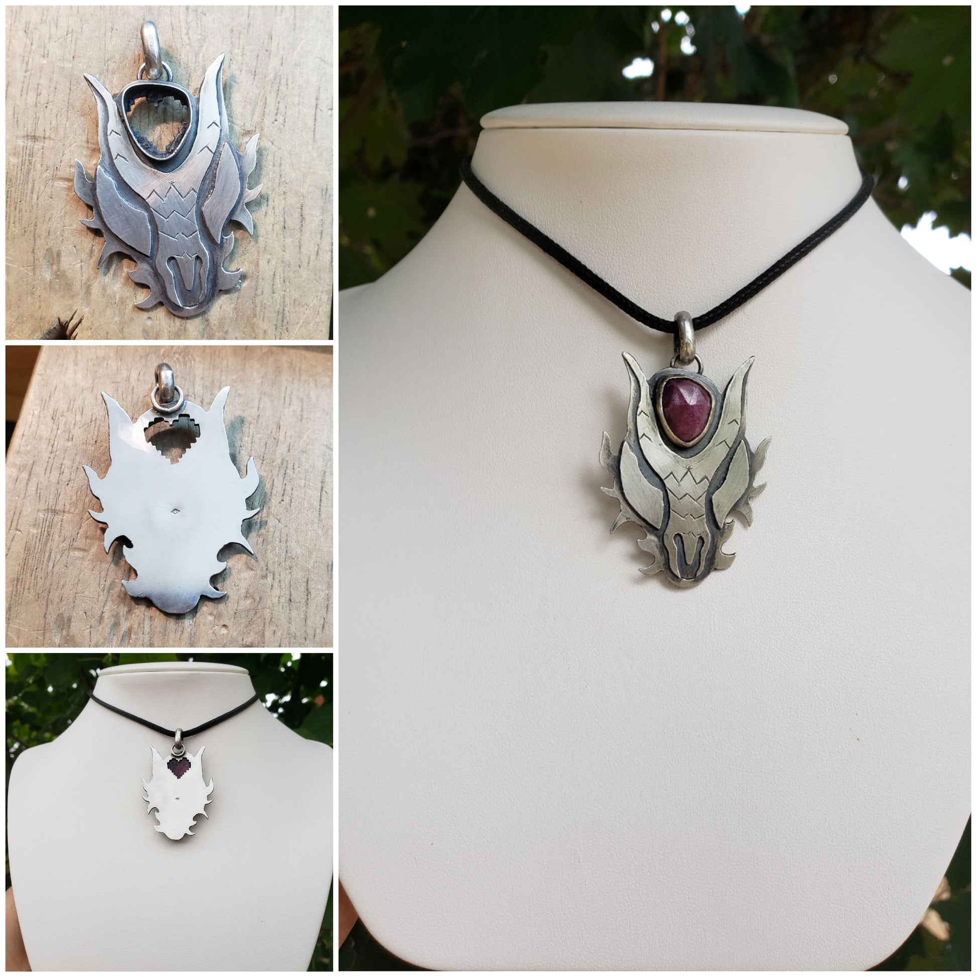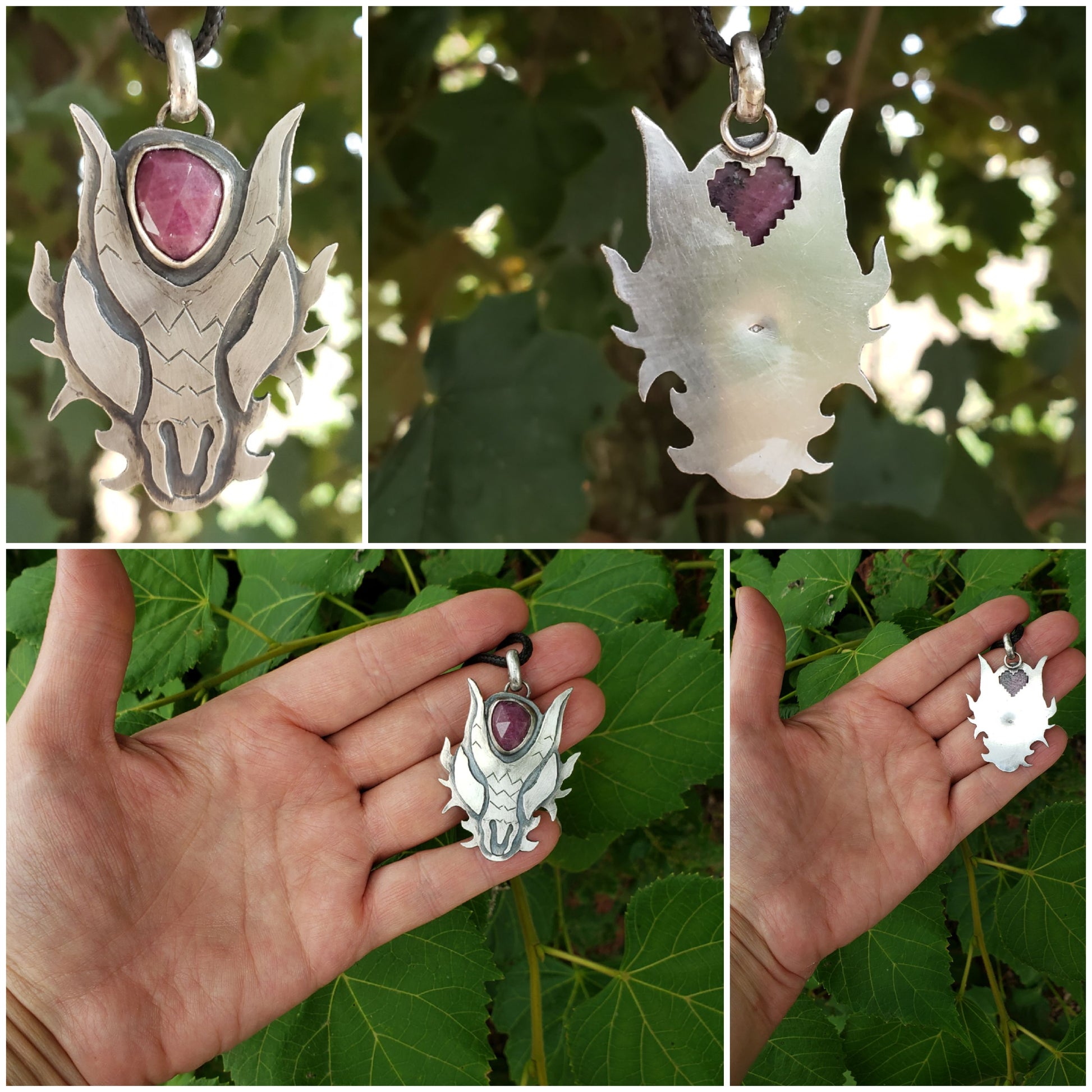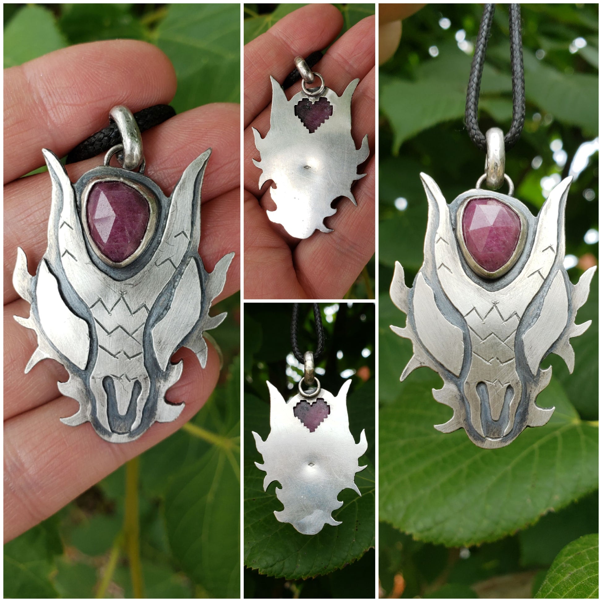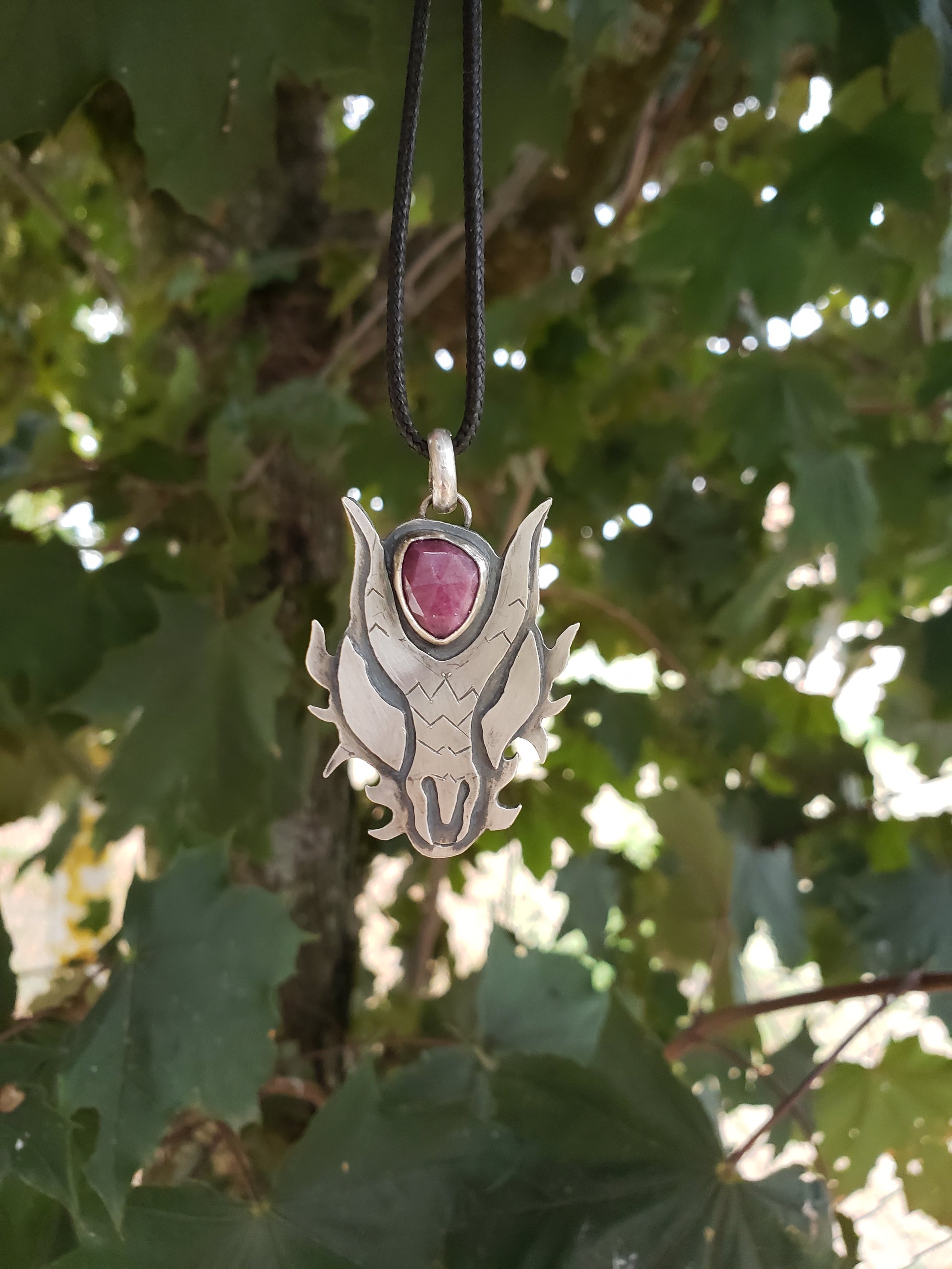 Handmade pendant in sterling silver with a pretty fecated Ruby entitled "Eldunarí"