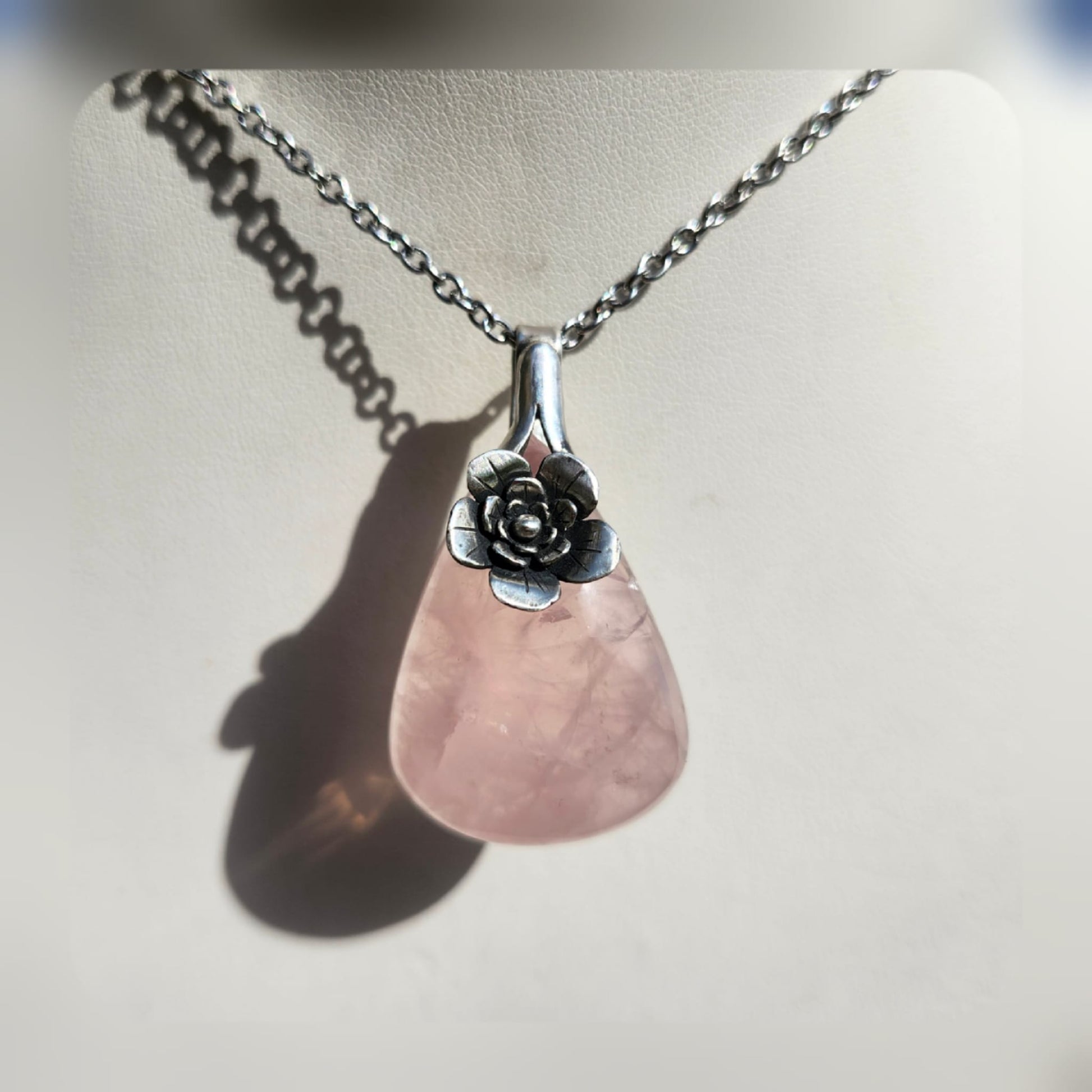 Dans la douceur du quartz rose s’épanouit une fleur, symbole de l’amour sincère et de la beauté du fragile. Une invitation à s’aimer, simplement.