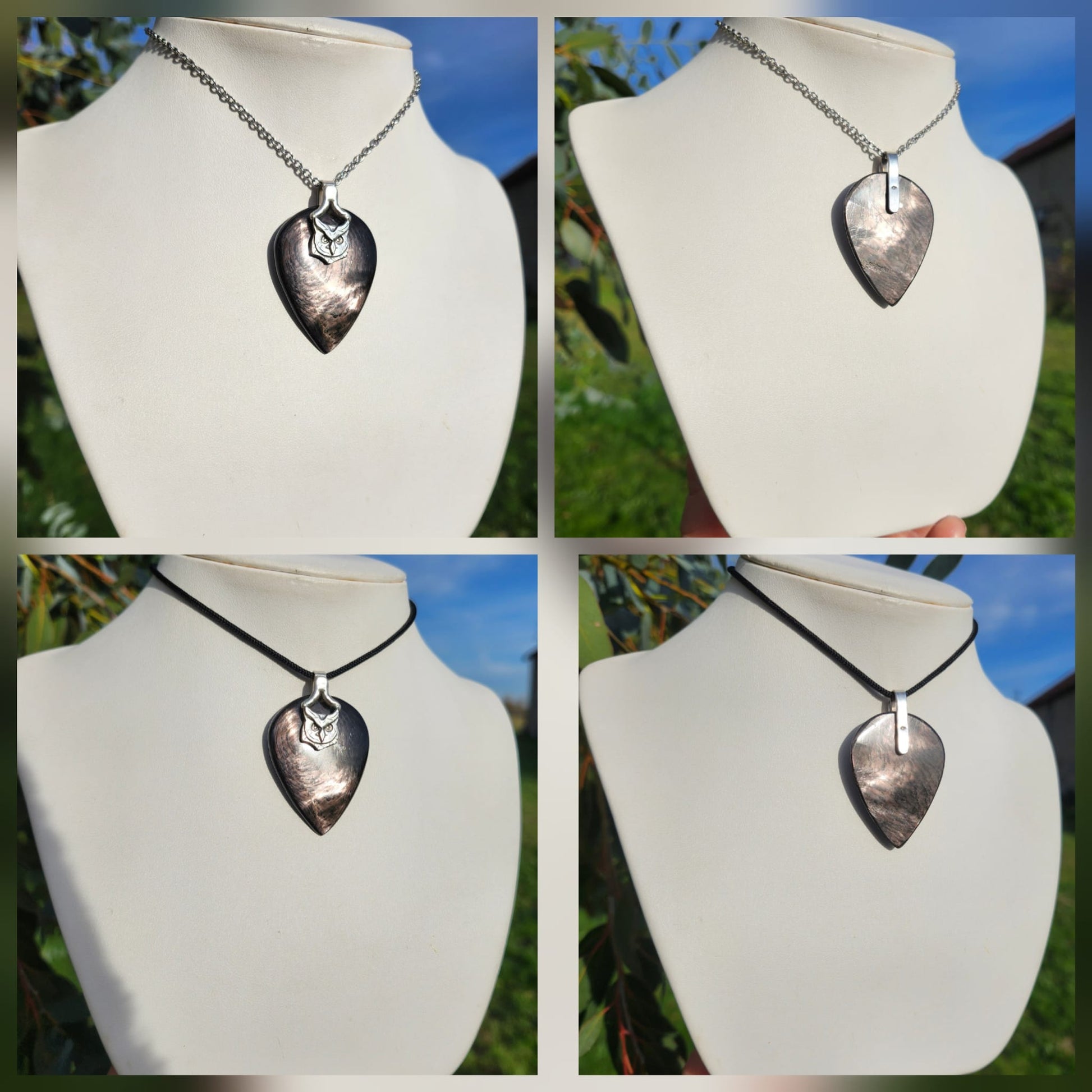 L’hyperstène, sombre et chatoyante, révèle sa sagesse à qui sait écouter. Le hibou, ses ailes déployées, y murmure : “La nuit est pleine de réponses”.