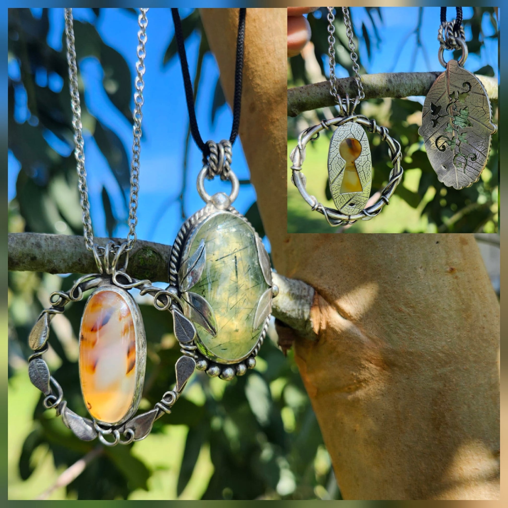 Pendentif fait main en argent massif avec une superbe Agate scénique intitulé "La Mémoire des Feuilles"